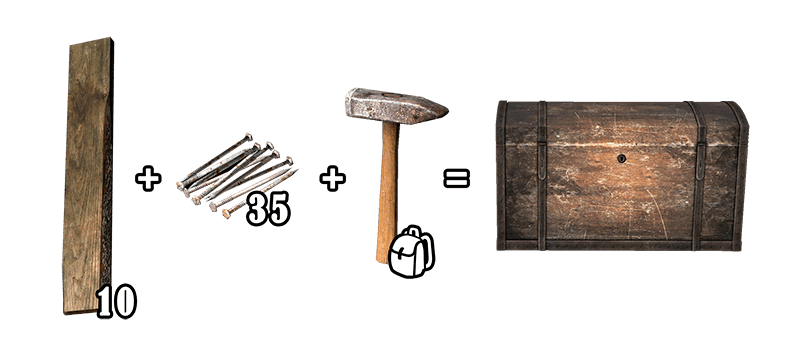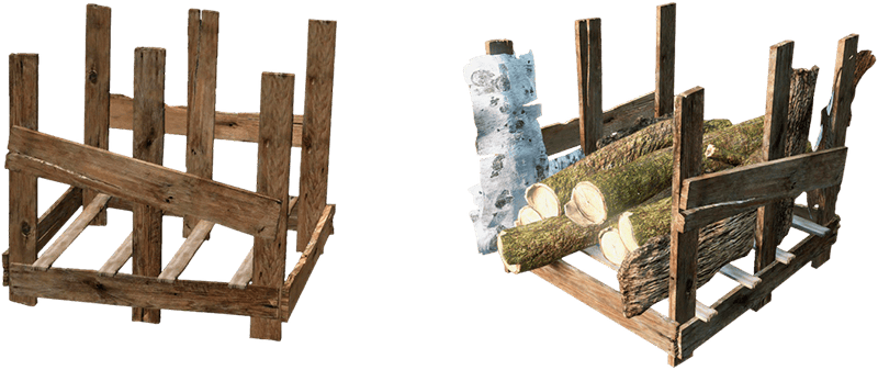 Вмещает 42 полена и 48 коры, +4 слота. Крафтится 2 доски + 6 гвоздей.