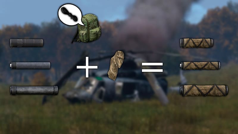 Глушитель + Полоски мешковины + Веревка (в инвентаре)