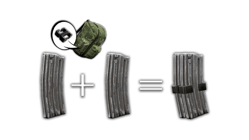 Для спарки двух магазинов в первую очередь необходимо найти "каплер". При сборке он должен находиться в инвентаре. Совмещаем два магазина не зависимо от количества патрон (разряжать магазины не нужно). Для разбора спарки нужно применить к ней нож, отвертку или мультитул с открытой отверткой.