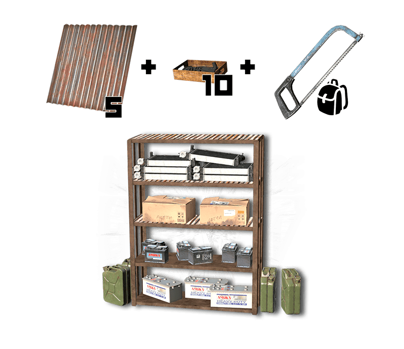 5 Листов метала + 10 Коробок запчастей + Пила по металлу в инвентаре = Набор для установки стеллажа