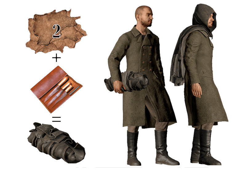 - 1шт Шкура + 2шт Брезент + Супер клей и Скотч в инвентаре = Капюшон ХК