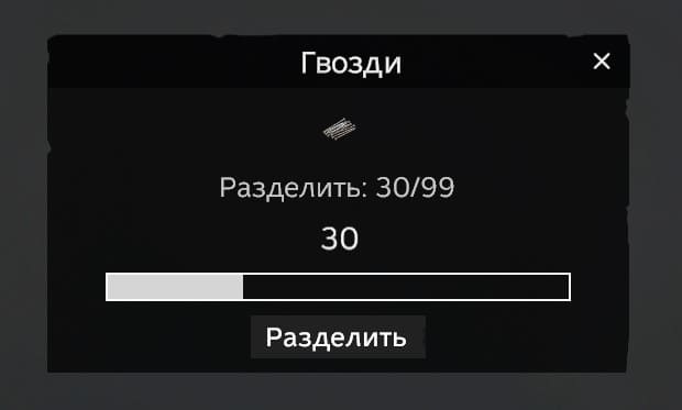 Вы можете разделять предметы на определенное количество, удерживая нажатой левую клавишу CTRL + ПКМ